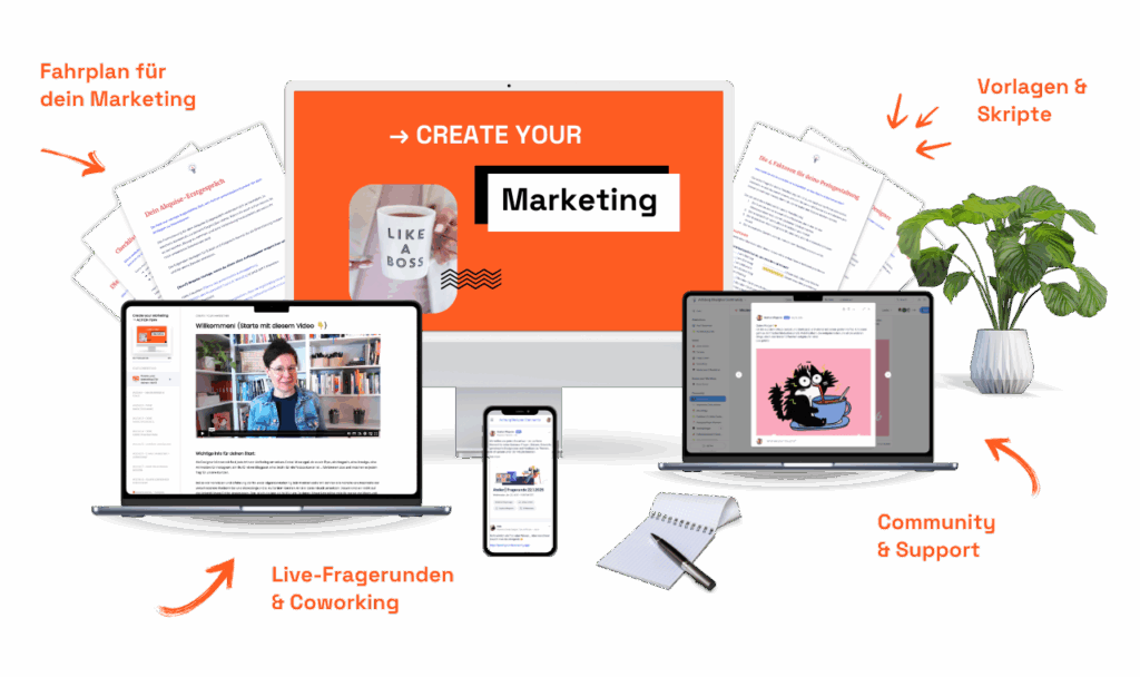 Für Designer:innen, die keinen Bock mehr auf Marketing-Frust, Algorithmus-Hamsterräder und ständige Content-Überforderung haben.